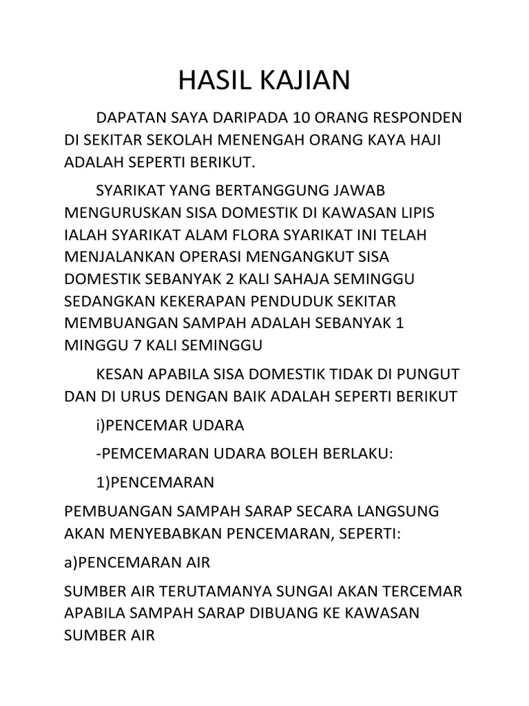Doc Laporan Kajian Pencemaran Alam Sekitar Di Kawasan Perumahan Mizs Sakinah Academia Edu